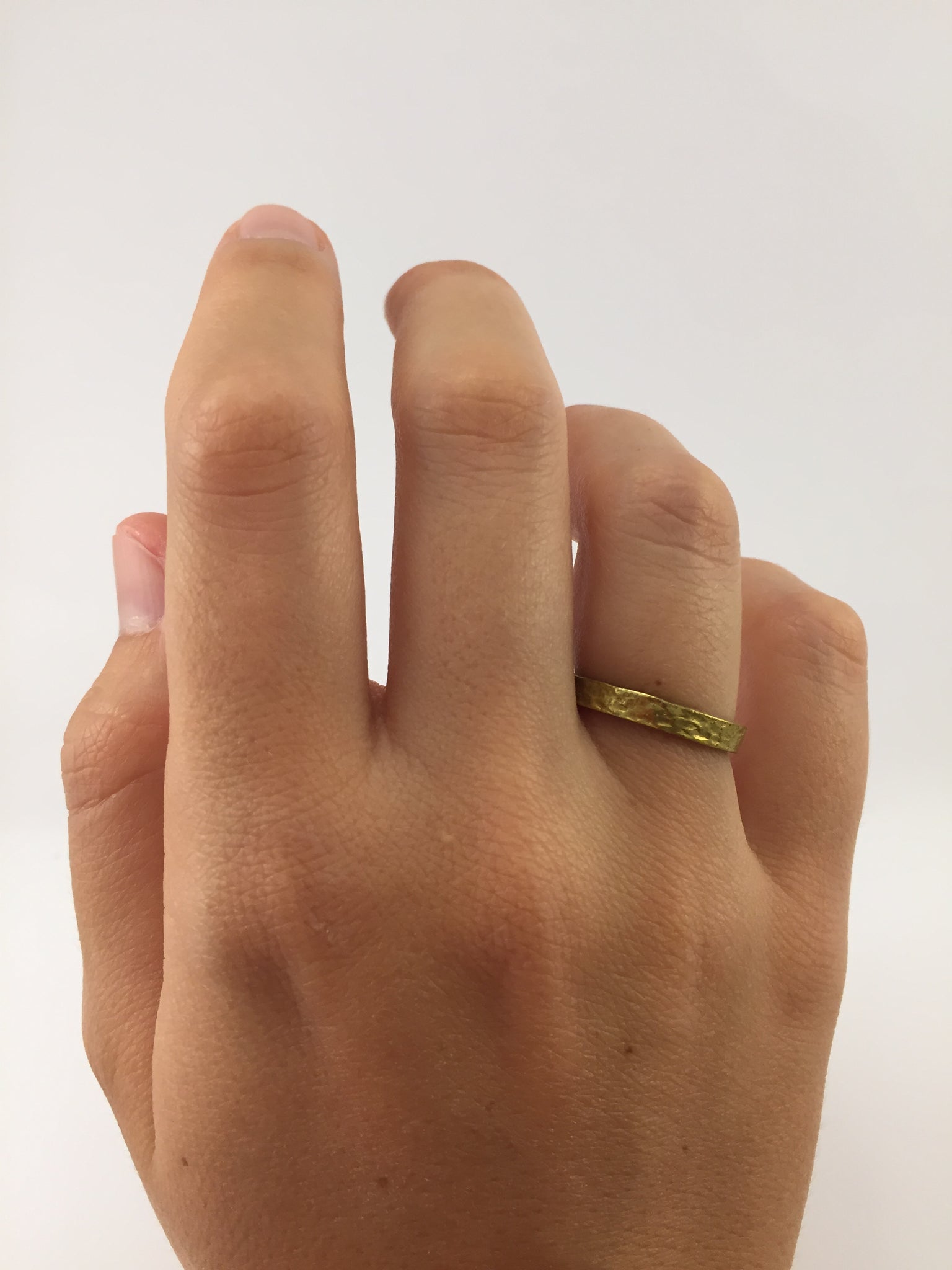 Alianza de boda artesanal en oro, oro blanco o plata con grabado de texturas orgánicas simbolizando los pasos del amor.