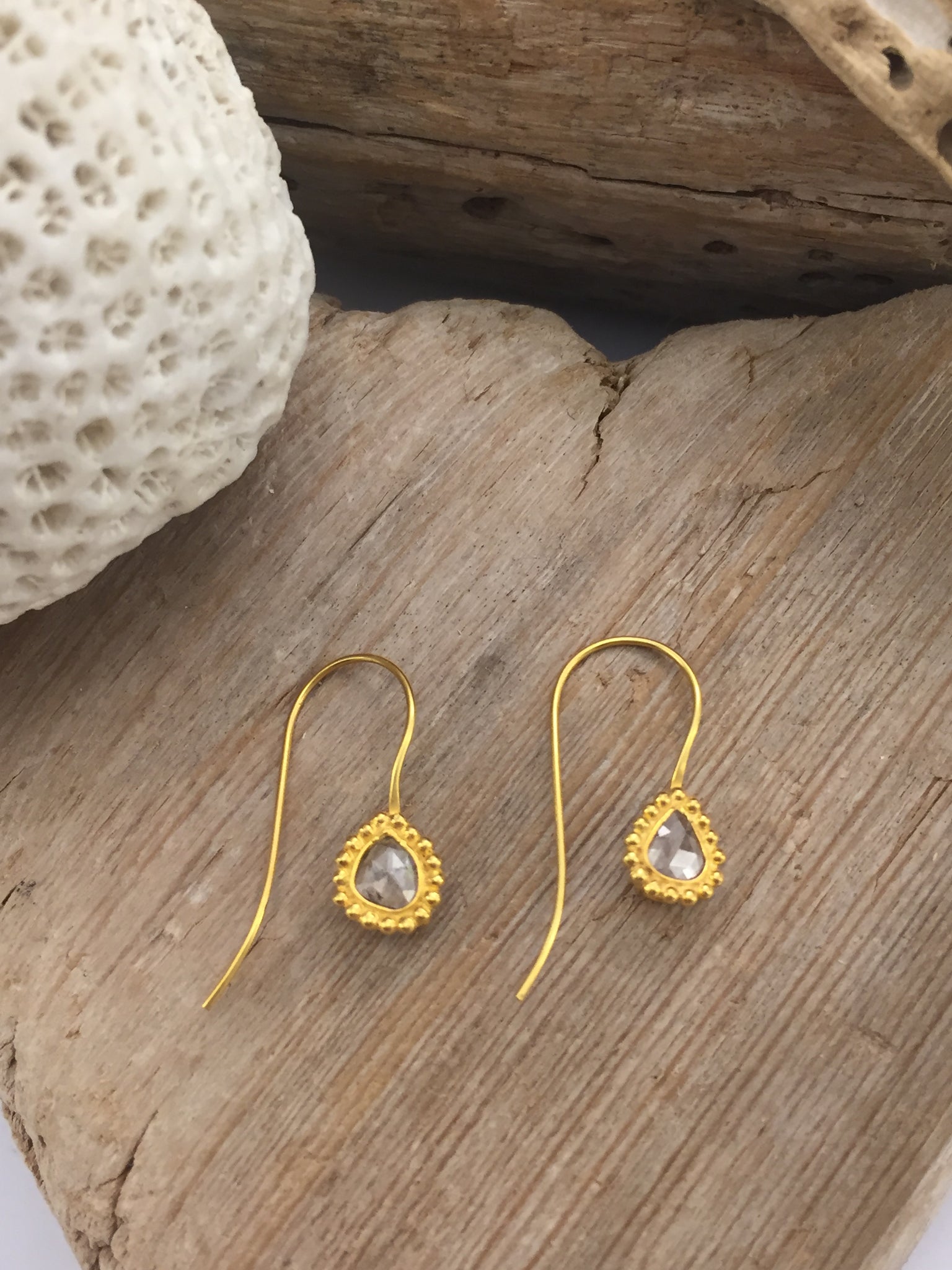 Inspirado en el valor de las gotas de agua. Estos pendientes artesanal con diamante en plata u oro, es además una joya solidaria con la que se financian proyectos de construcción de pozos en Etiopía.