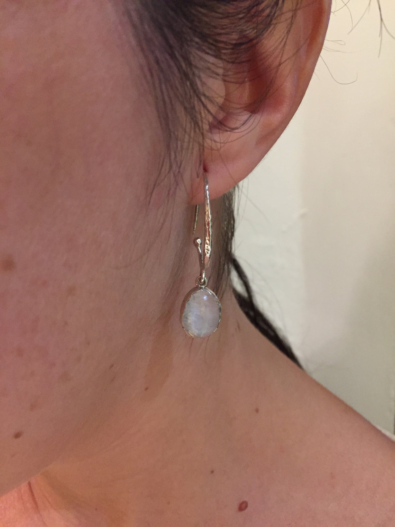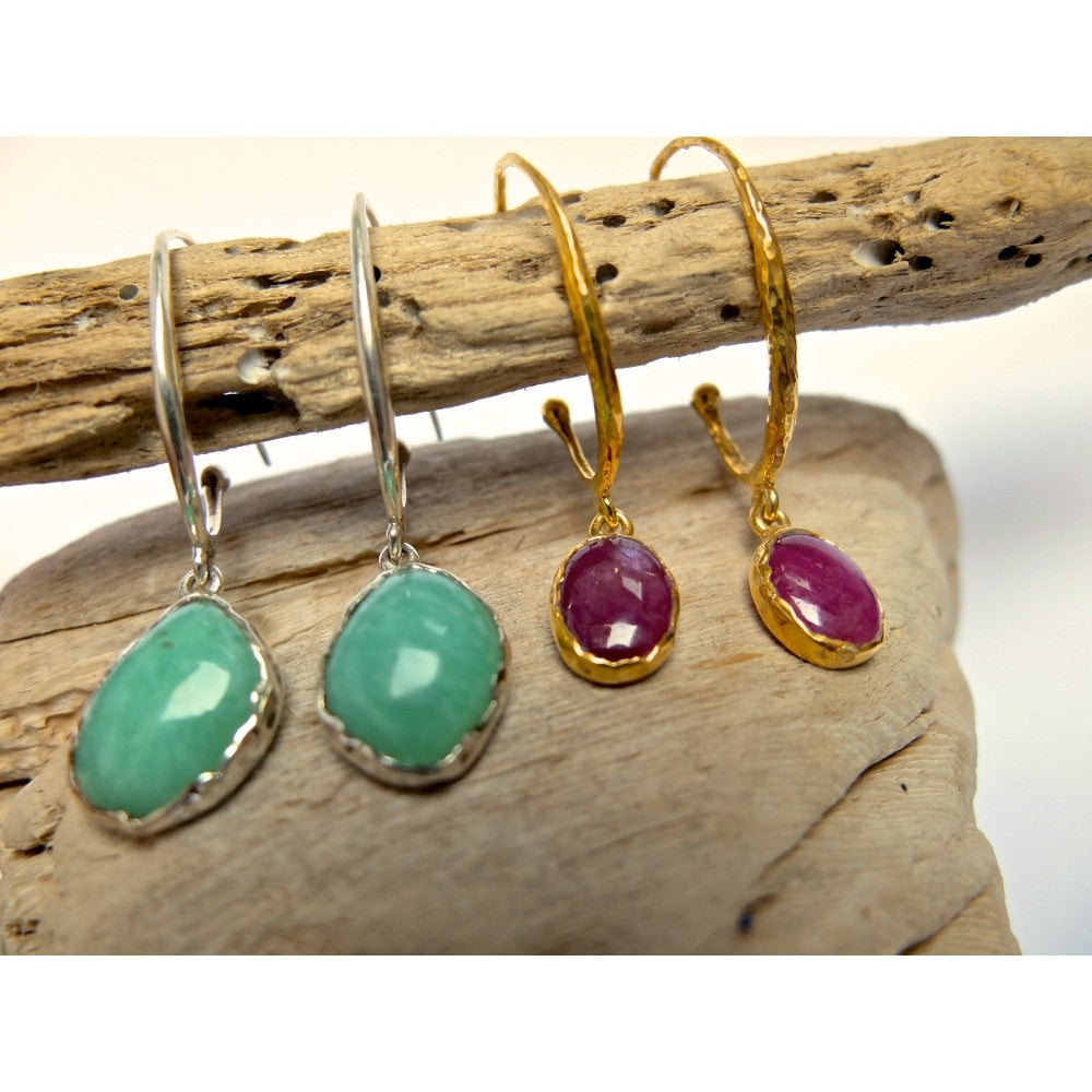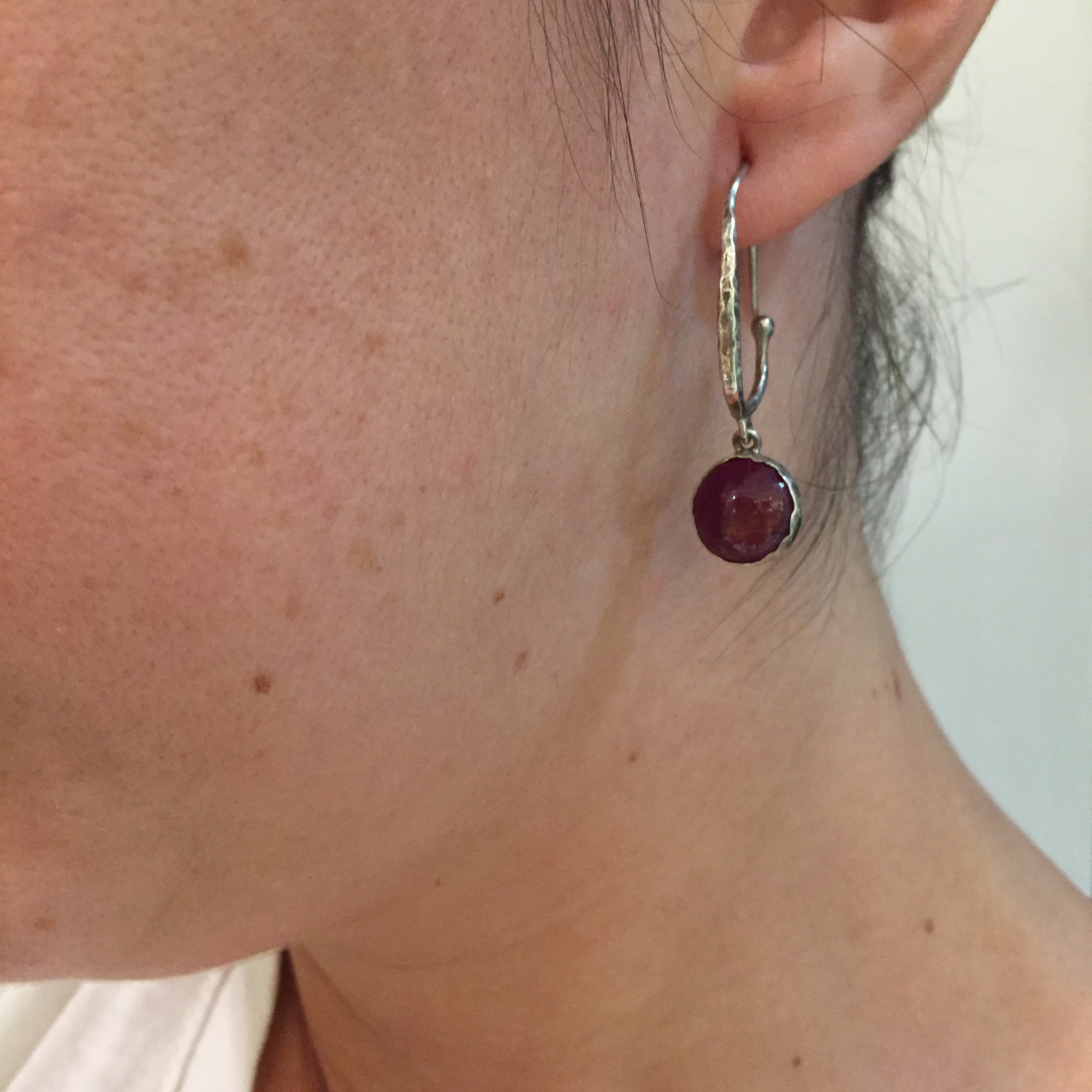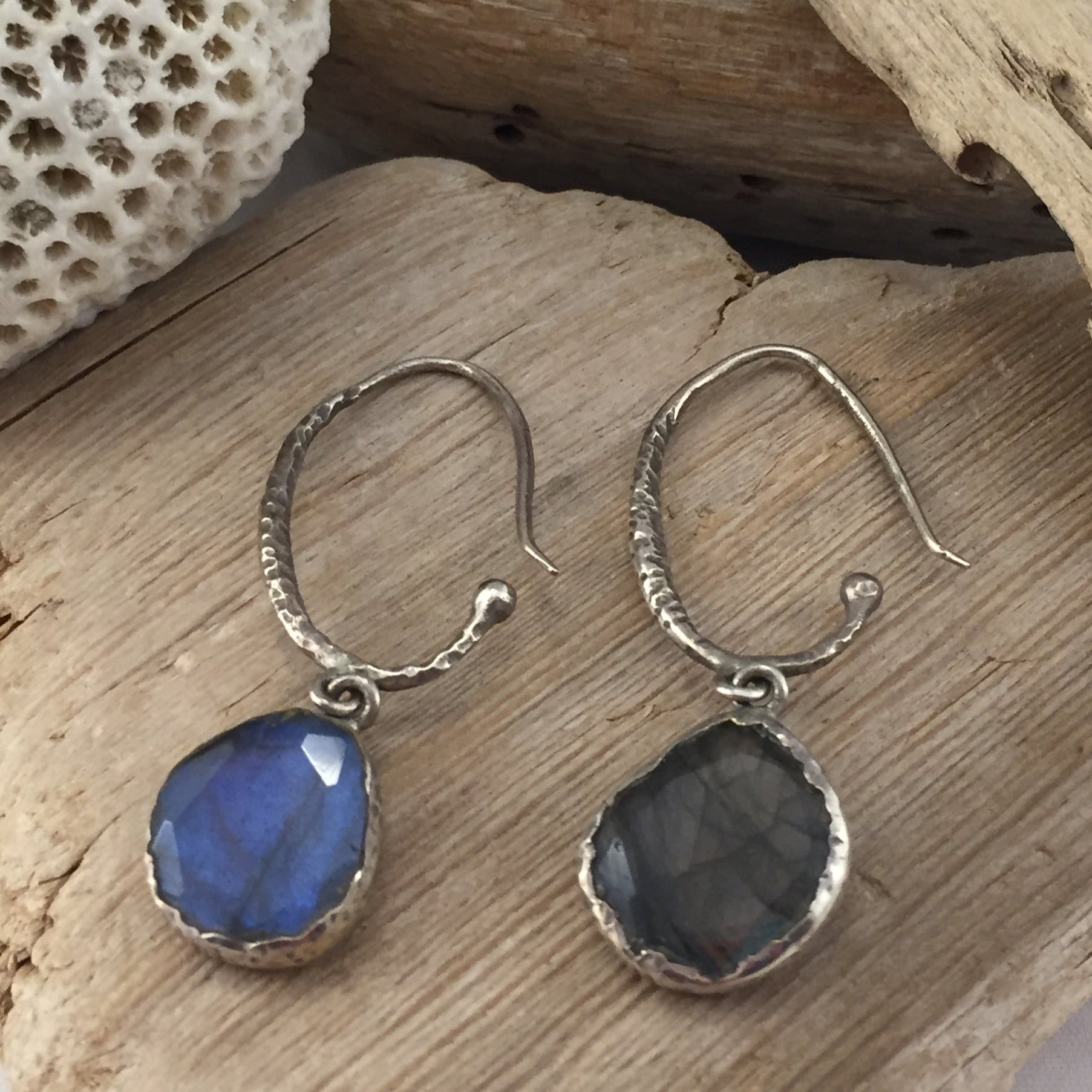 Pendientes artesanales en plata de diseño único con textura orgánica estilo vintage con  piedras semipreciosas  con  formas naturales irregulares.